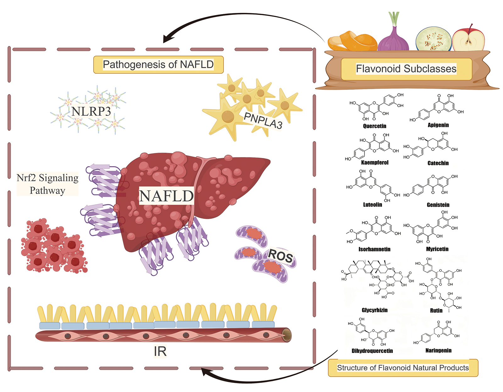 This work explores flavonoids’ complementary role in NAFLD, bridging natural product chemistry with hepatic pathophysiology. While not yet established as primary therapeutics, their multi-target mechanisms position them as valuable candidates for adjunctive intervention in this metabolic disorder.