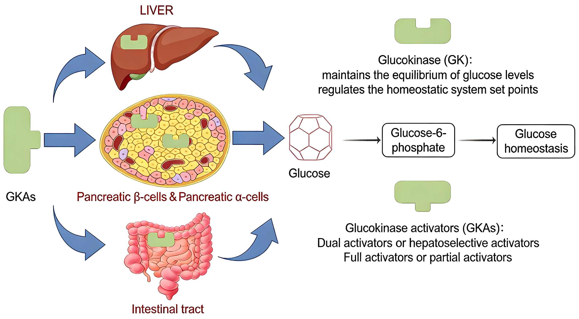 At the heart of human metabolic health is glucose homeostasis—the precise regulation of blood sugar levels—guided by a quiet cellular conductor: glucose kinase (GK), a molecular “thermostat” that maintains glucose equilibrium by setting the body’s homeostatic system points. Found across three critical metabolic tissues— the liver, pancreatic α/β-cells, and the intestinal tract—GK triggers the conversion of glucose to glucose-6-phosphate, the foundational step in locking in the balanced fuel flow cells need without destabilizing the body. Enter glucose kinase activators (GKAs): a versatile class of compounds (including dual or hepatoselective variants, plus full or partial activators) that target GK in these tissues, amplifying its function to fine-tune glucose’s path through the liver, pancreas, and gut; for conditions like diabetes, where this balance unravels, GK and its activators represent a pivotal therapeutic frontier—resetting the “thermostat” to restore the body’s natural glucose regulation, turning a cellular workhorse into a potential lifeline for metabolic wellness.