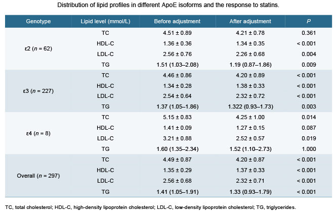 The present study was designed to explore and validate the relationship between solute carrier organic anion transporter family member 1B1 (SLCO1B1) and apolipoprotein E (ApoE) gene polymorphisms and both the occurrence of statin-related adverse reactions and the therapeutic efficacy of lipid-lowering treatment in patients receiving statins. To address this aim, we performed a retrospective cohort study involving patients who attended a pharmacist-led outpatient clinic from January 2022 to December 2023. In total, 297 patients met the inclusion criteria and were enrolled in the analysis. Patients were stratified according to their genotypes as well as the type of statin medication administered, and the associations between genetic polymorphisms and the lipid-lowering efficacy of statins were comprehensively evaluated. The analyses revealed that serum TC and LDL-C levels showed statistically significant differences among the ε3, ε4, and overall genotype groups, both before and after adjustment (P < 0.05). Likewise, significant differences in TG levels were observed in the ε2, ε3, and overall genotype groups (P < 0.05). Importantly, post-adjustment values of TC, LDL-C, and TG were consistently and significantly lower than those recorded prior to adjustment. In addition, the incidence of statin-associated musculoskeletal symptoms was found to differ significantly among individuals with the SLCO1B1 c.388 A > G GG genotype, the SLCO1B1 c.521 T > C CT and TT genotypes, as well as in the overall study population before and after adjustment (P < 0.05). Collectively, these findings provided robust evidence that tailoring statin therapy according to ApoE and SLCO1B1 gene polymorphisms could be an effective approach for guiding clinical decision-making. Our study, therefore, offered a valuable reference for clinicians in selecting appropriate statins and in promoting individualized treatment strategies to optimize therapeutic outcomes for diverse patiens populations.